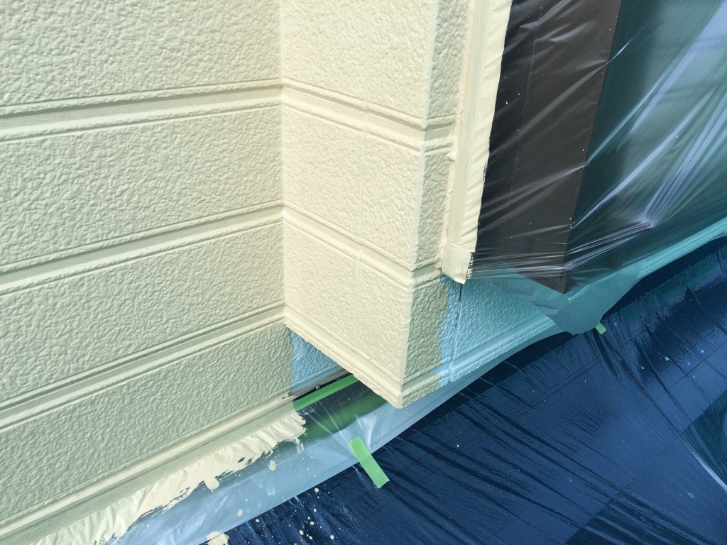 外壁 セラミシリコンにて中塗り塗装。