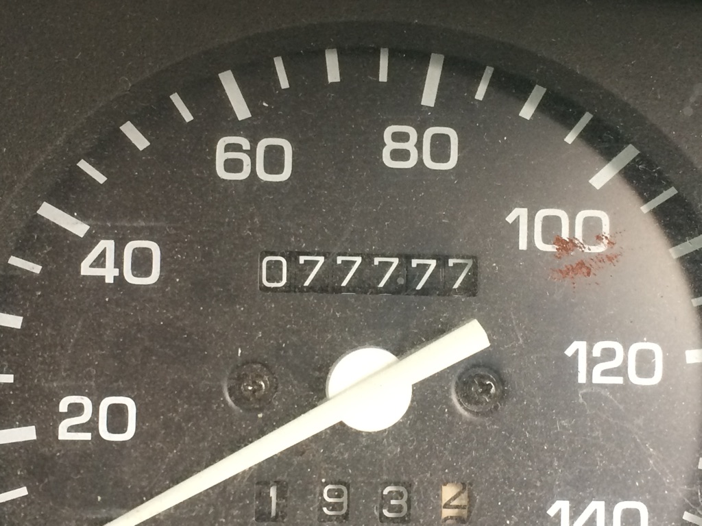 朝、車のスピードメーターを見ると、何と走行距離が77777kmでした!