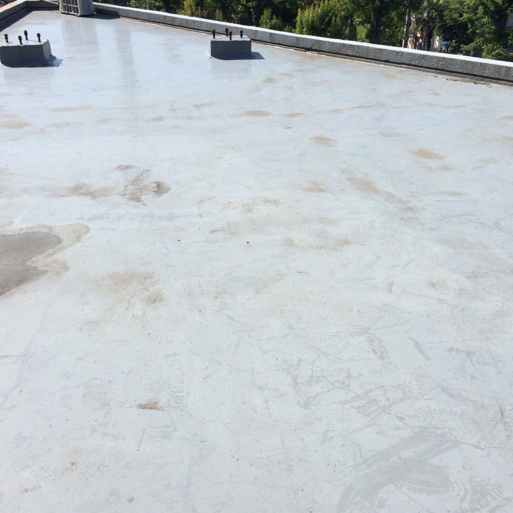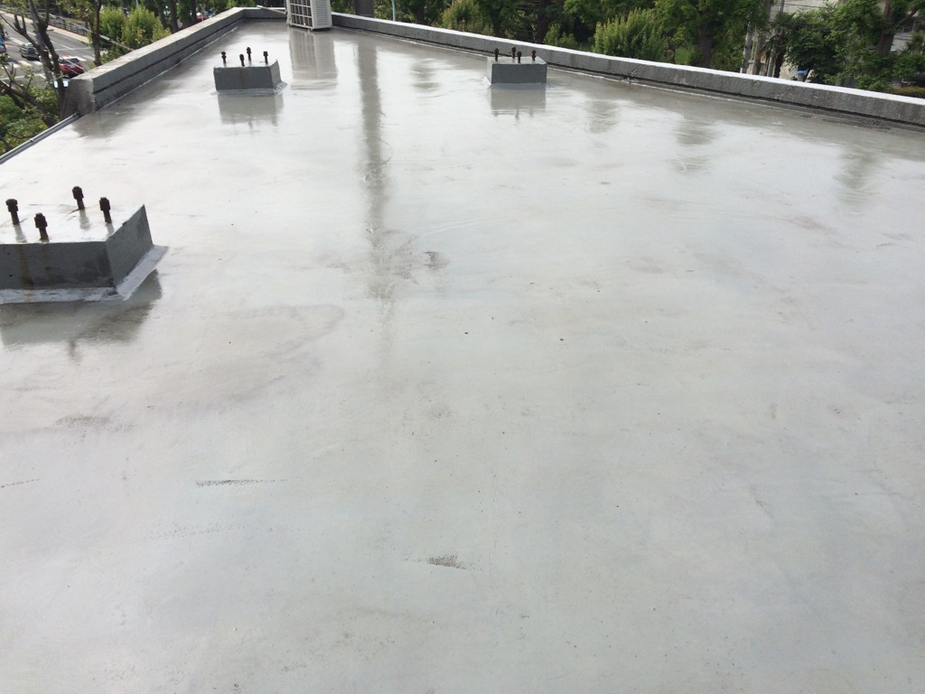 屋上の防水床の洗浄。