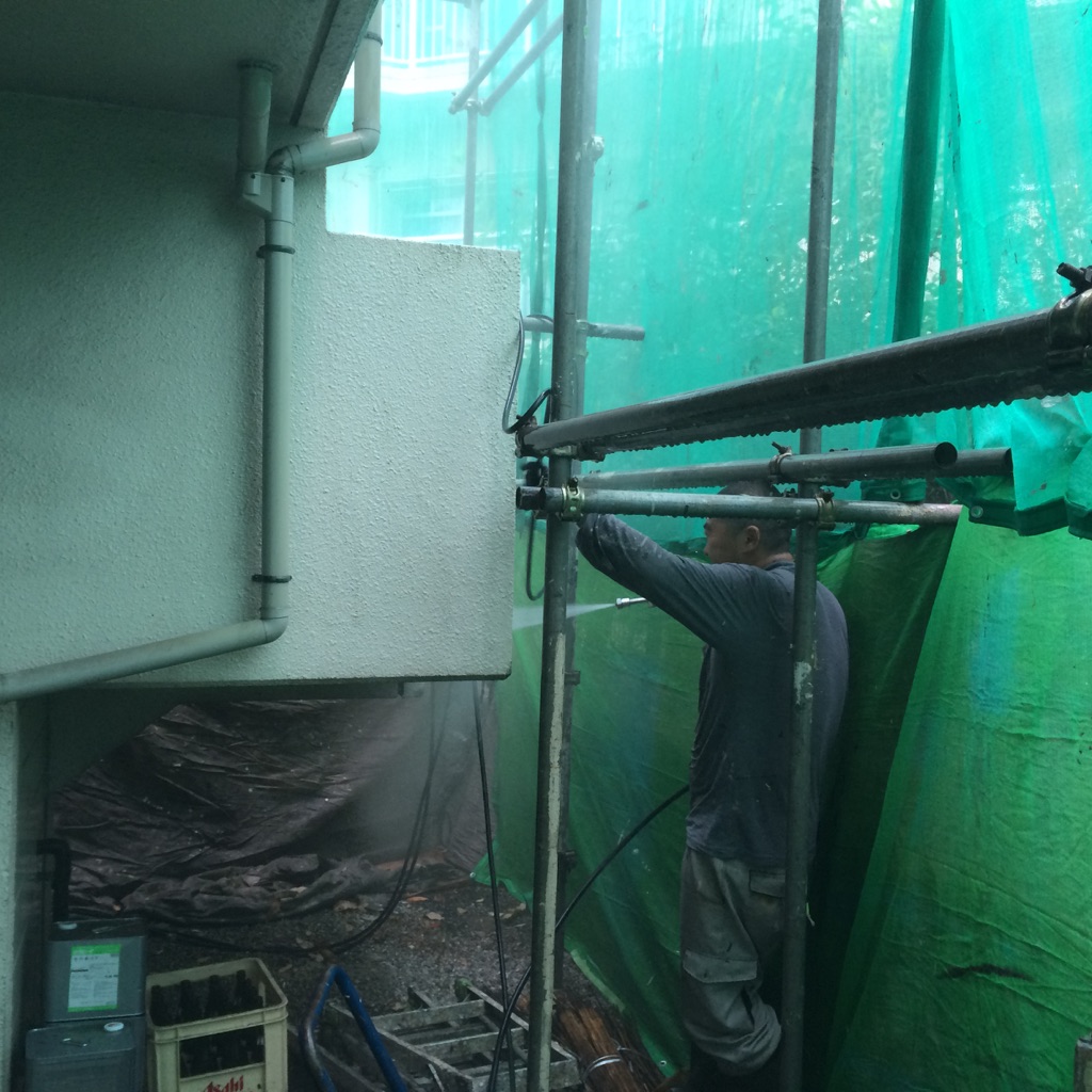 雨模様という事もあり、高圧洗浄のみの工程です。