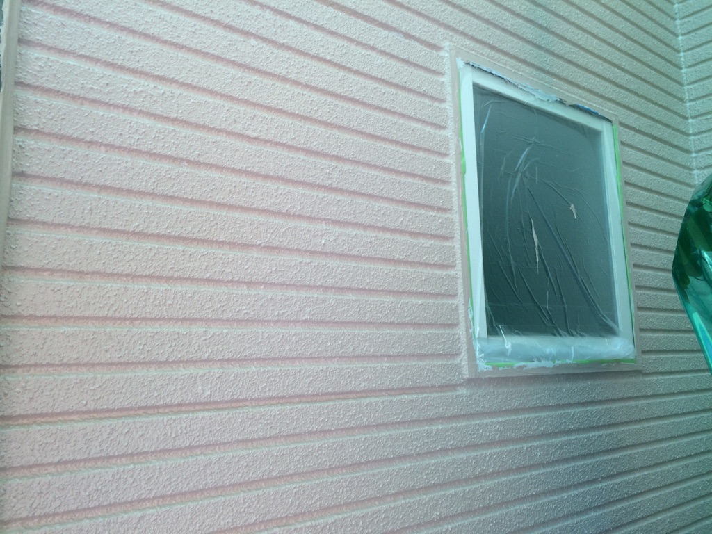 破風板、飾りケーシング柱の塗装。マイルドシリコンにて。