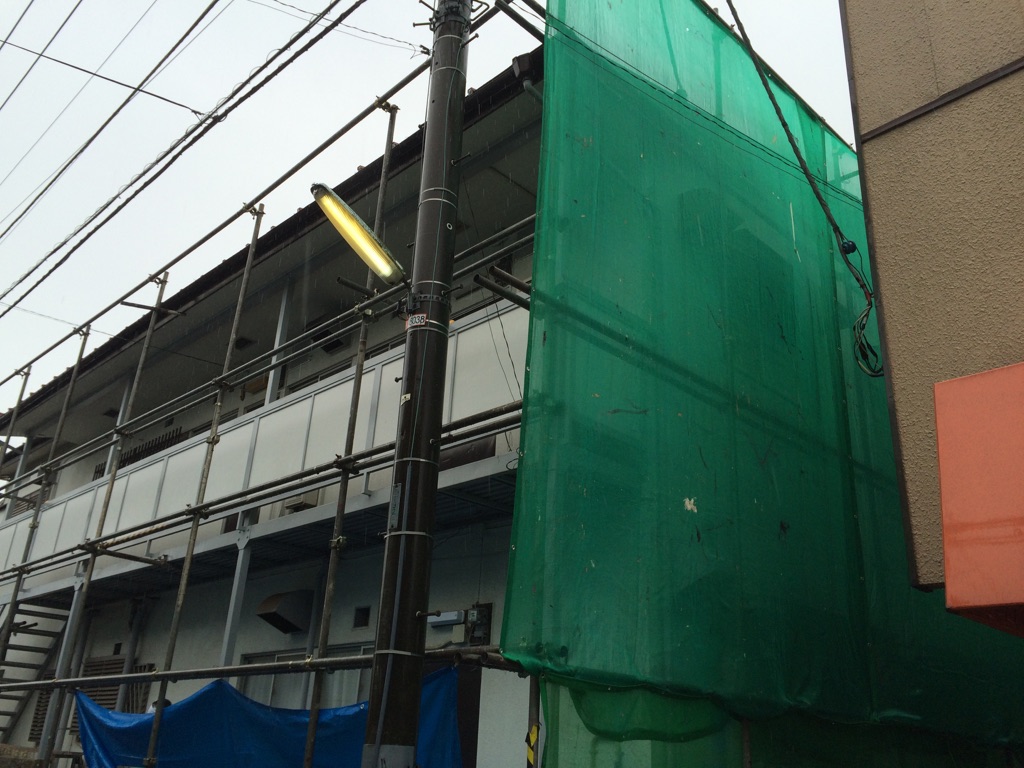 足場の組み立て。