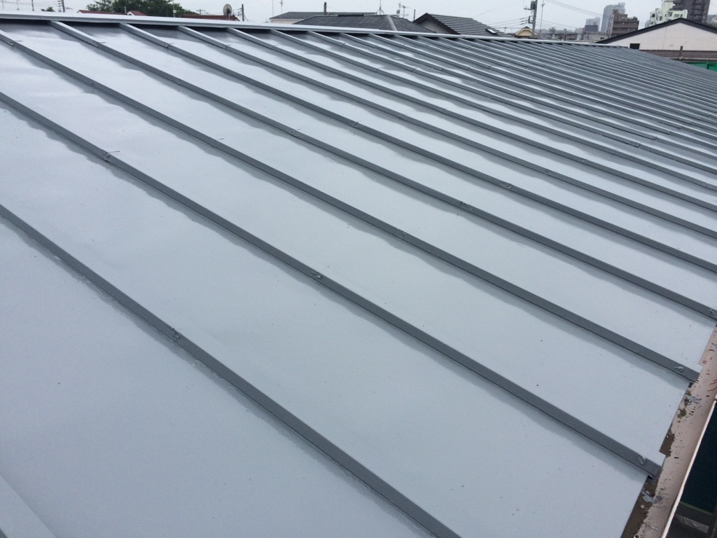 トタン大屋根 ヤネフレッシュ 色グレーでの塗装。