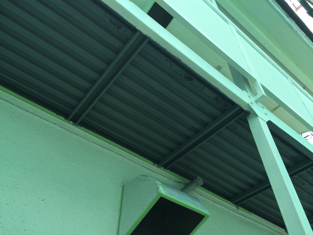 及び鉄骨キーストン(通路裏側)の仕上げ塗装。グレー色にて。