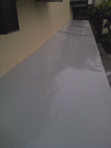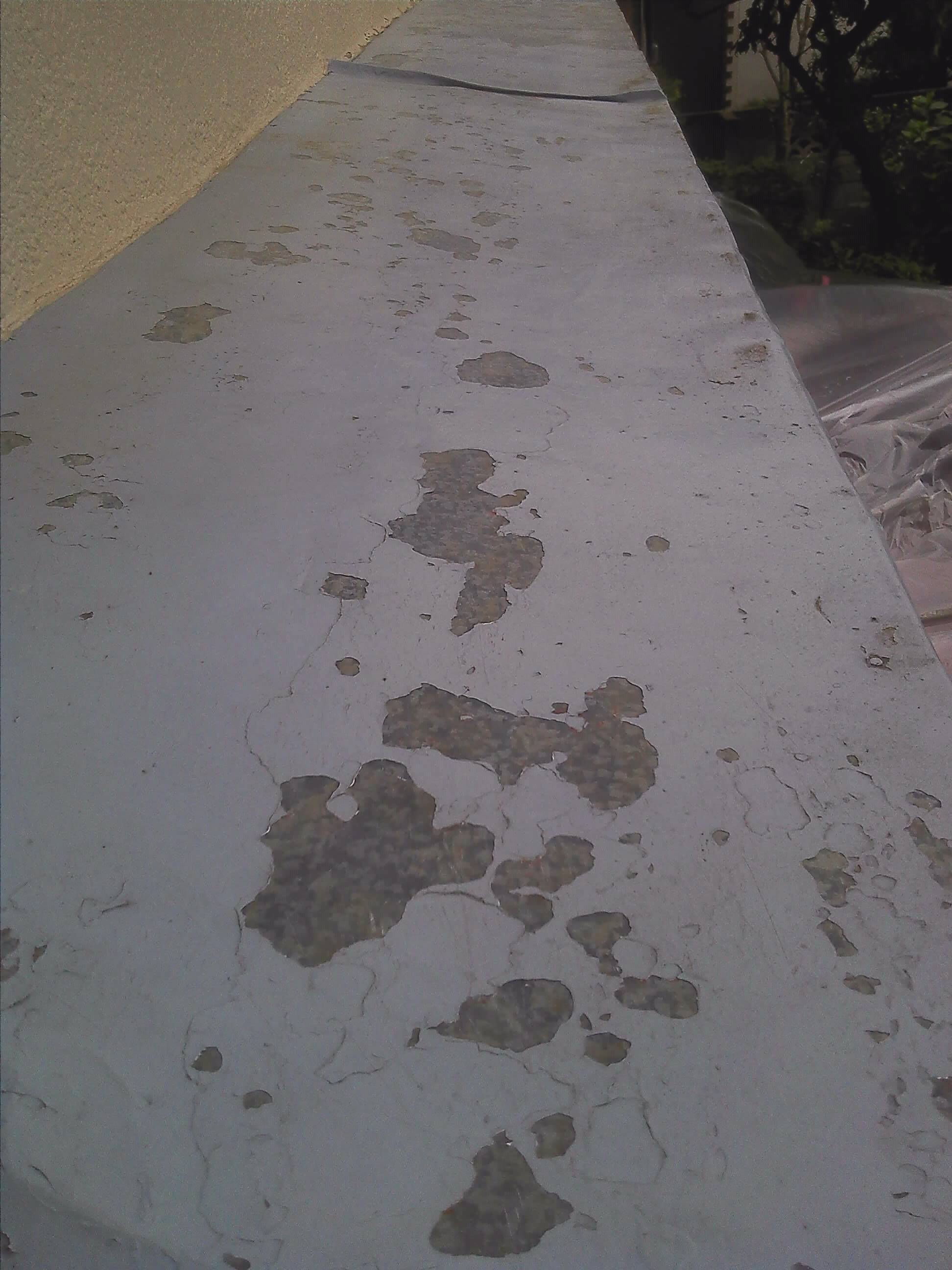 3年ほど前に当社で塗装した霧除けですが、写真のようにはがれたとのお問い合わせをいただきました。