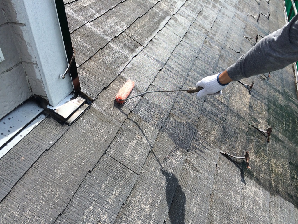 コロニアル屋根のプライマー塗装。