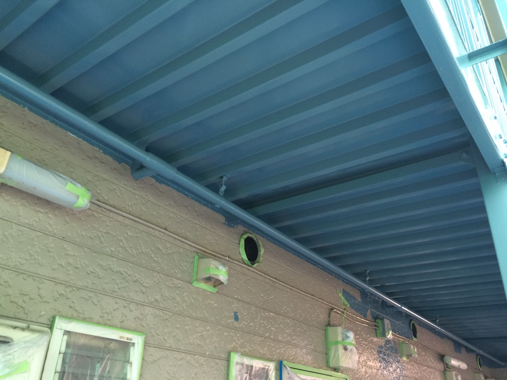 途中で雨になり、鉄骨のキーストン等の上塗り塗装。