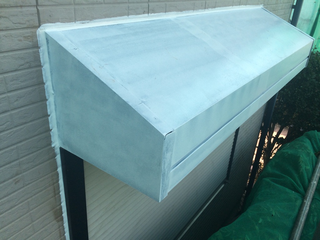 シャッターボックス及び破風板に塩ビ用のプライマー塗布。