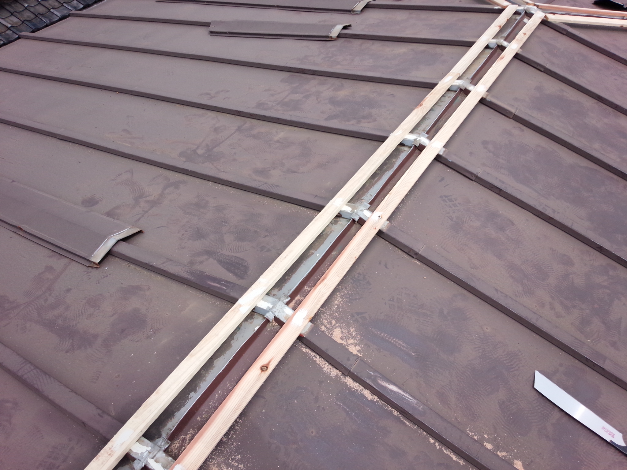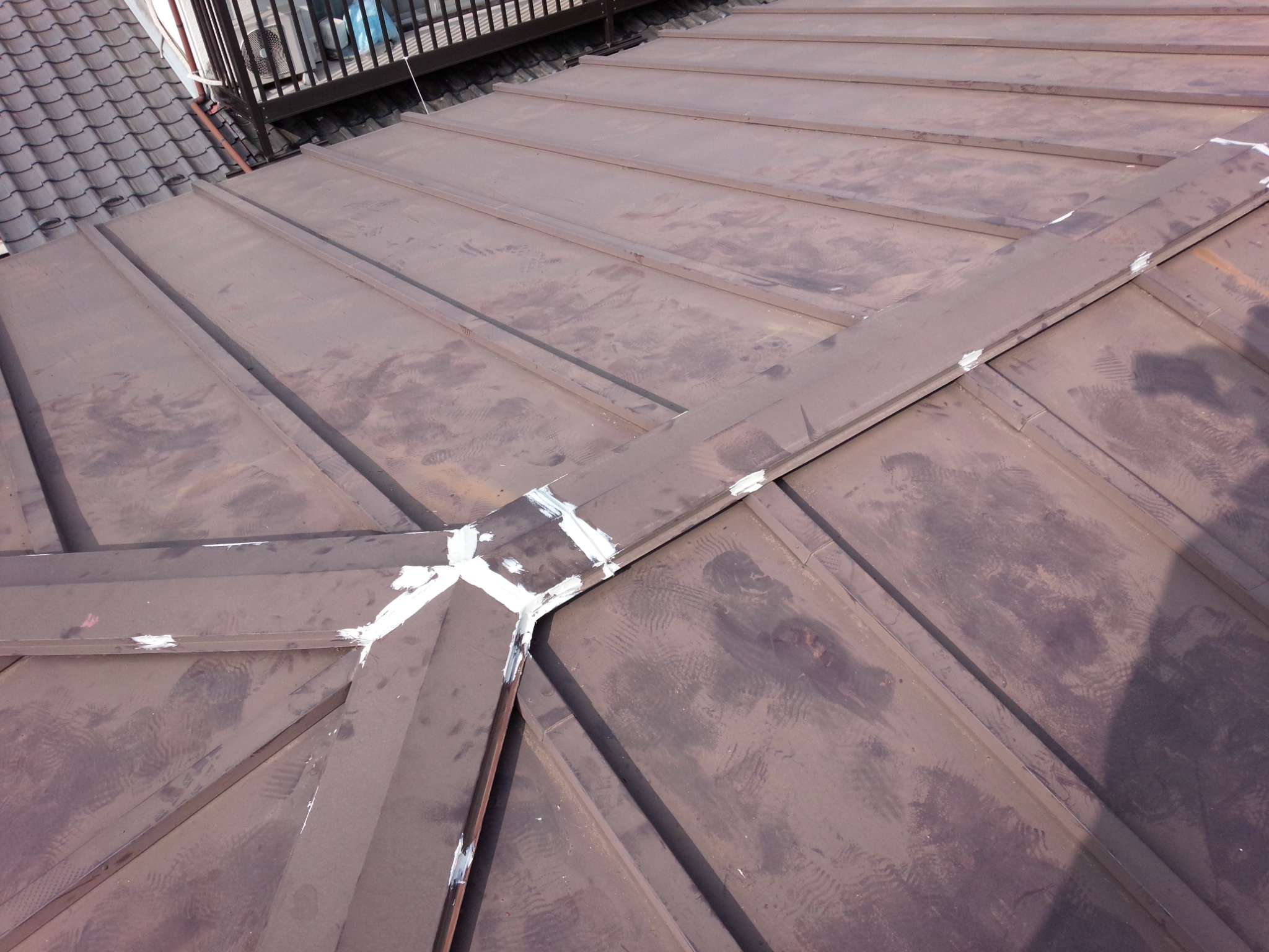 笠木の復旧作業。