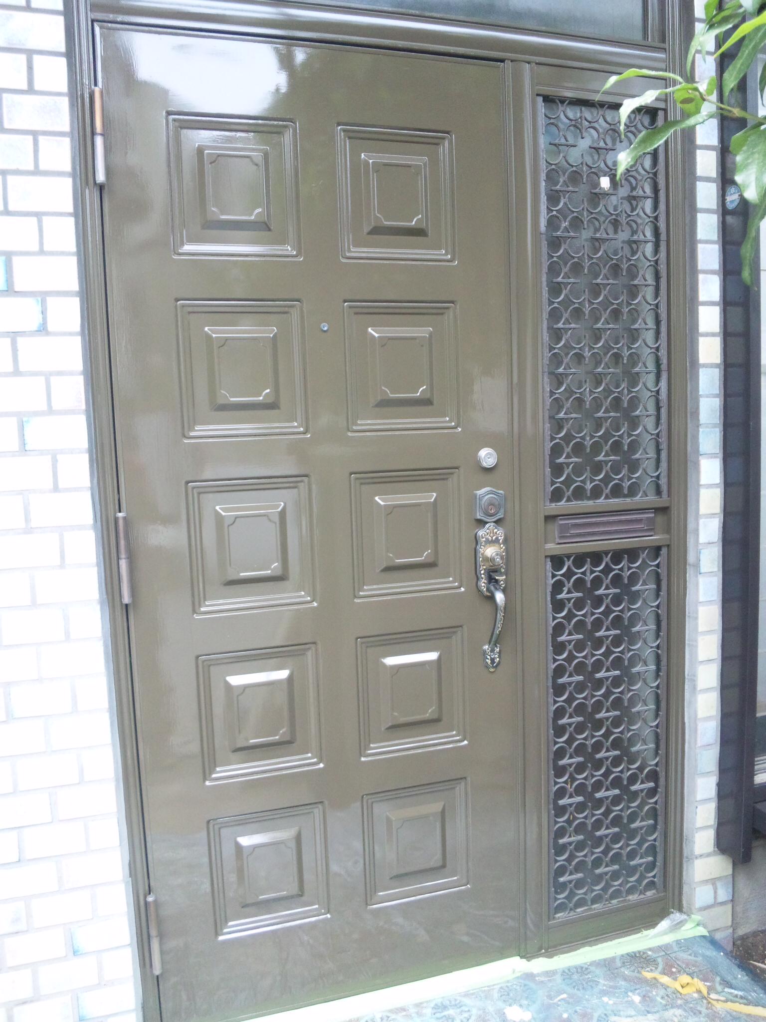 玄関のドアも本来はアルミサッシなので塗装はしないのですが、かなり色がくすんでいたので塗らせていただきました。
