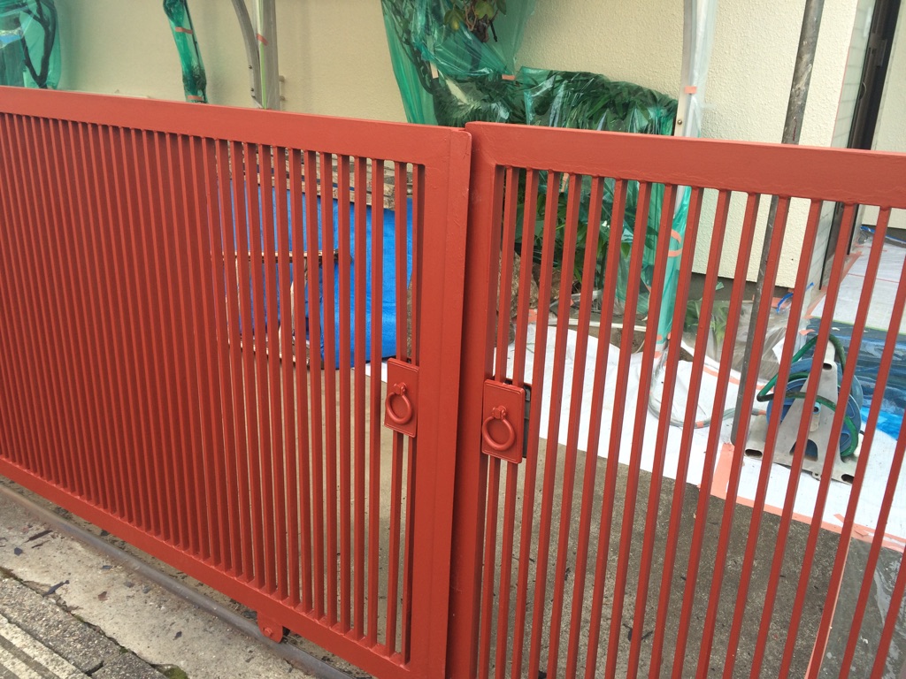 鉄骨門扉のけれん作業。及びさび止め塗装。