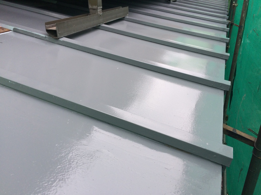 霧除けや下屋根のトタン部分 マイルドシリコン 色グレー 塗装。