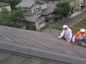 続いて、メッシュシート掛け、コロニアル屋根のけれんです。