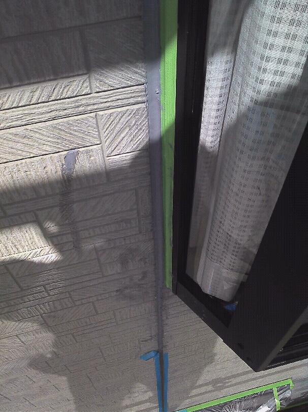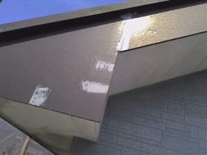 まず、コーキング打ちです。サイディング部分と破風板部分の割れ等の個所のシールです。