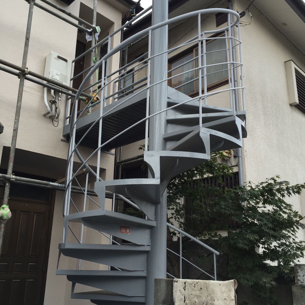 鉄骨階段塗装。マイルドシリコン 色グレーにて塗装。