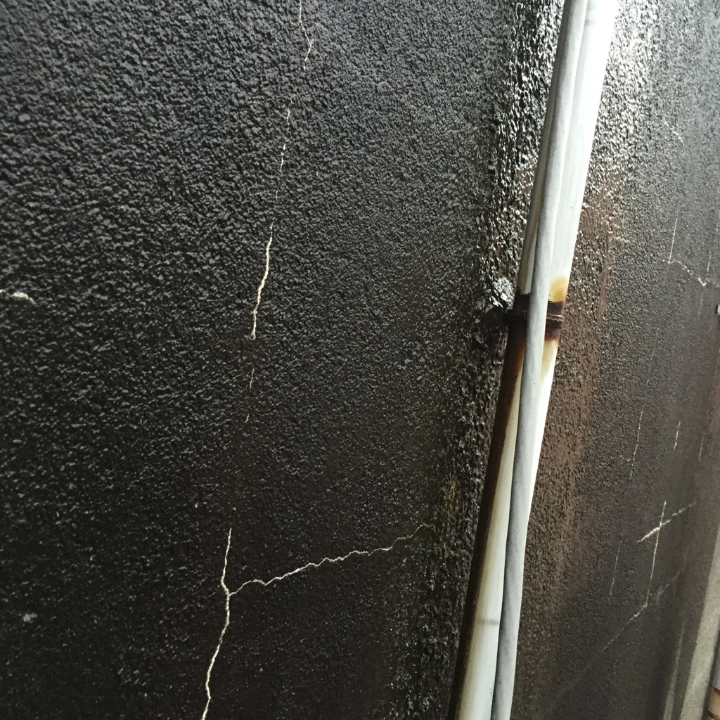 外壁も2F部分の北面及び東面、西面の塗装です。西面に関しては一度も塗装しておらず、防水面ともども相当コンディションは悪いと思われます。