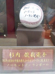 杉内投手のノーヒットノーランのボールも同じように飾られておりました。