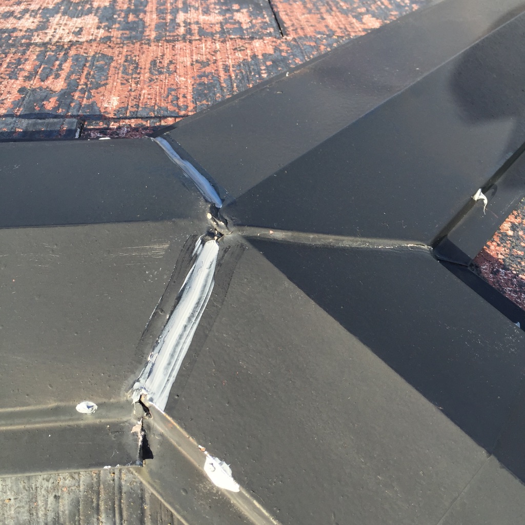 屋根板金部分の釘の打ち直し。及びコーキング補修。