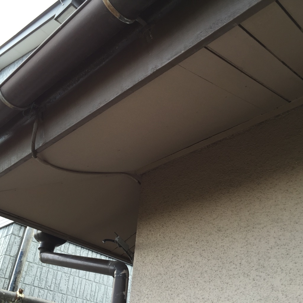 改修部分の軒天塗装。ケンエースにて施工。
