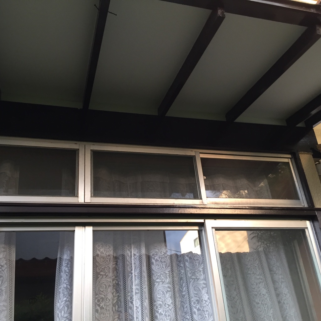 養生を外しながら、木部及び鉄部の塗装。マイルドシリコン 色ココナツブラウン。