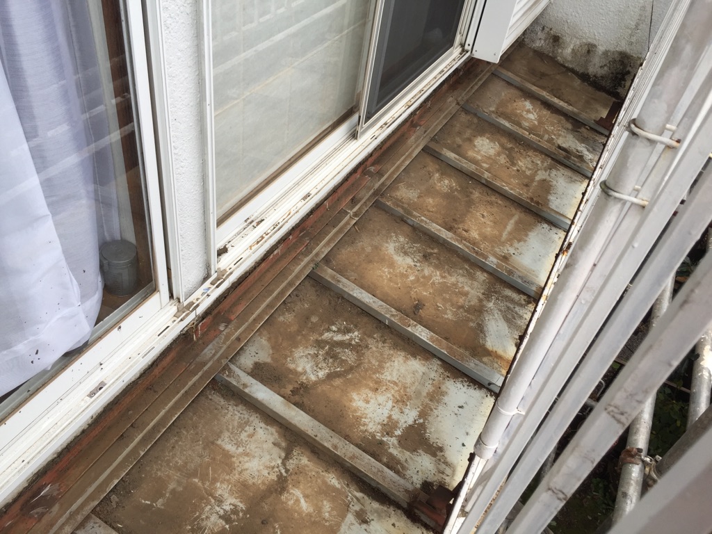 その間にベランダの床デッキと骨組みの鉄骨の解体及び撤去作業。