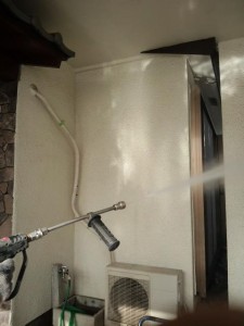 南面の下屋根の下付近で先日の台風で雨漏れがするとの事、怪しそうな個所があったので注意して塗装したいと思います。