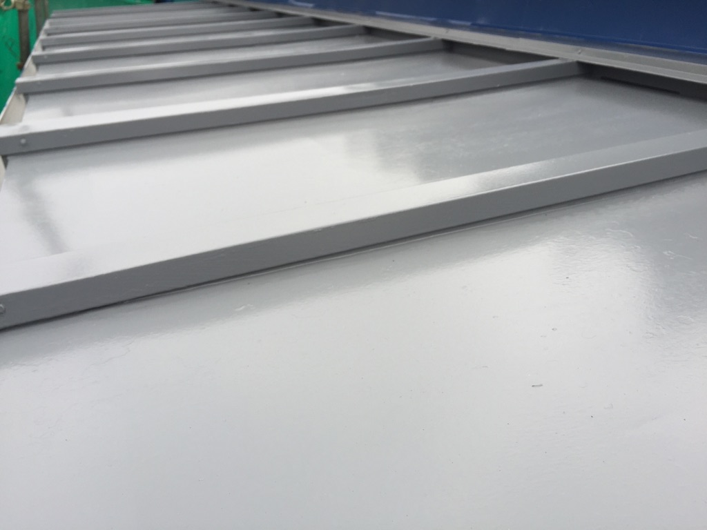 破風及び木部、雨樋の塗装。玄関の軒天やトタン部分の塗装をそれぞれ同じくマイルドウレタンにて施工。