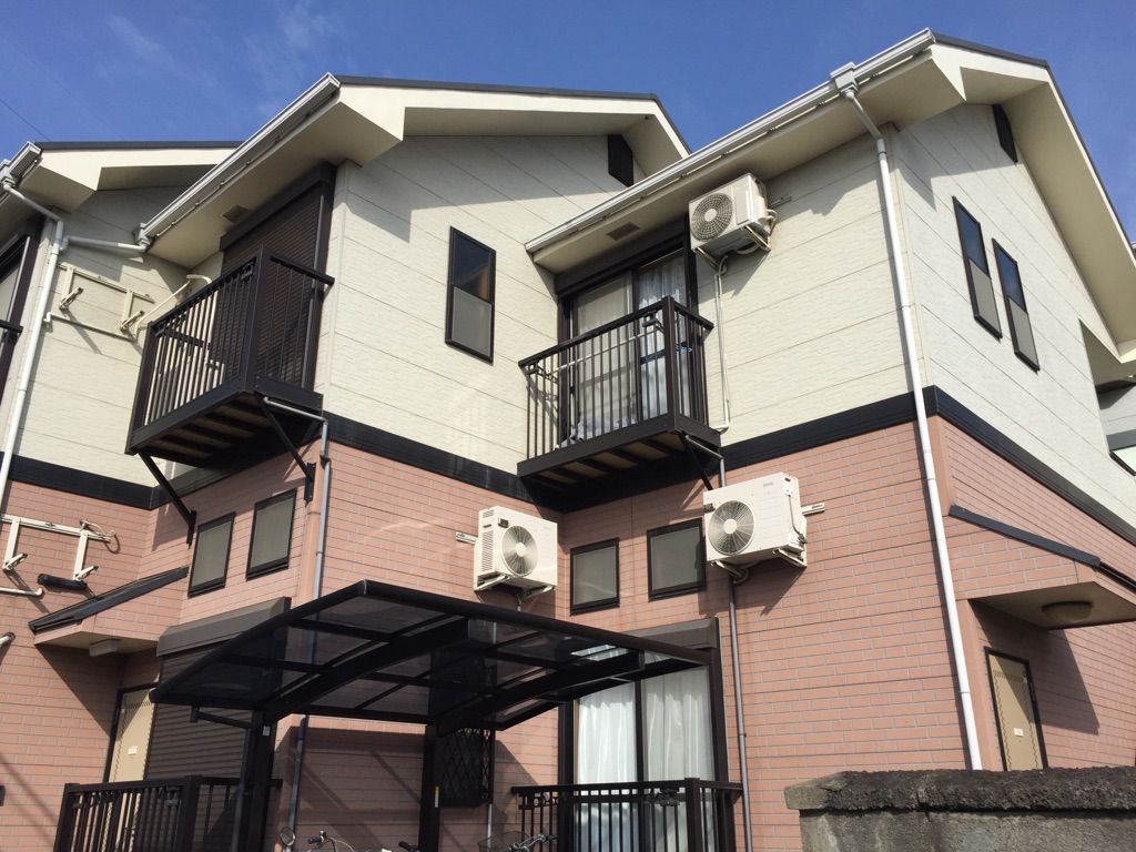 今回は屋根塗装、鉄骨階段塗装、コーキングの打ち替え作業工事になります。