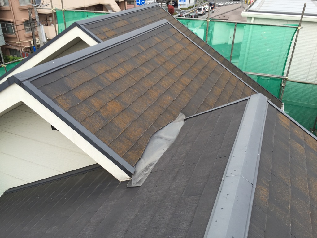 コロニアル屋根は プライマー お客様のご指示で日本ペイントさんのシリコンベストにて塗装。中塗り、上塗りの施工。