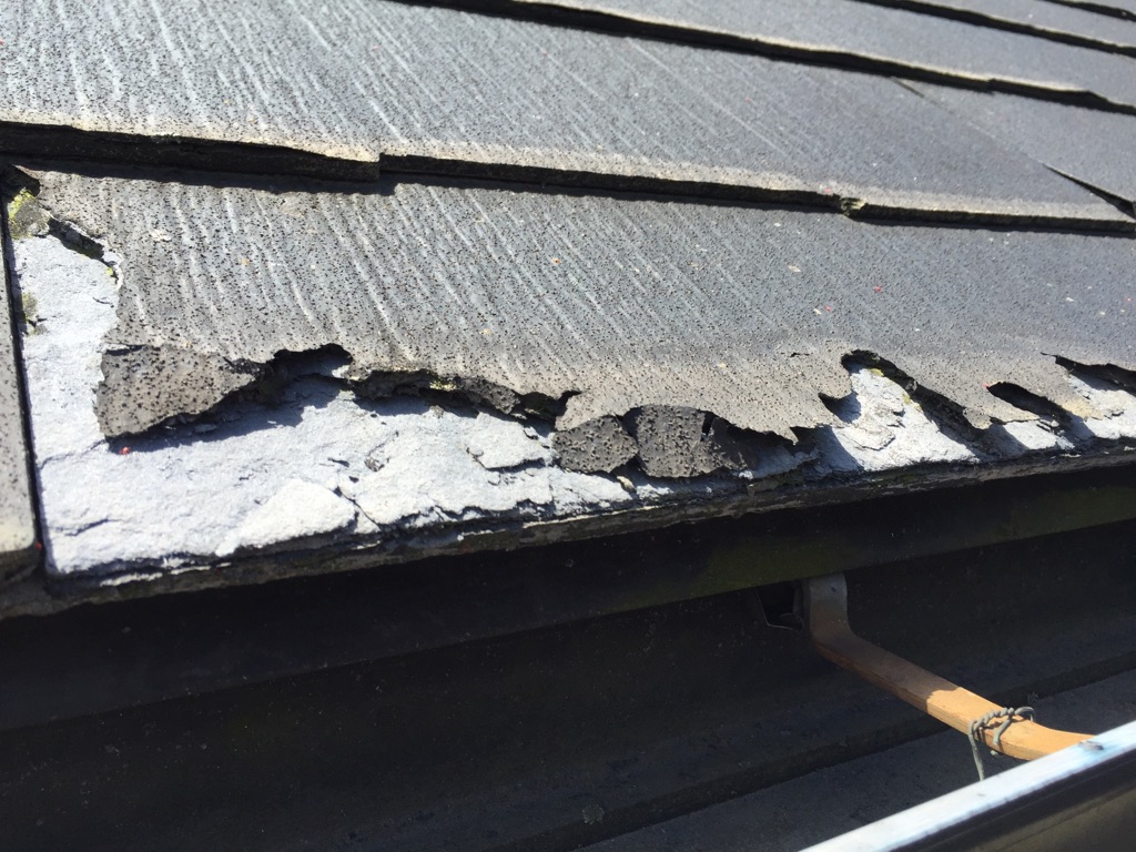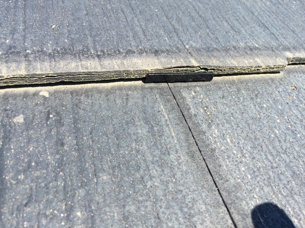 ただ、屋根に登り初めてわかりましたが、コロニアル板自体が劣化しすぎて剥離している部分がありました。