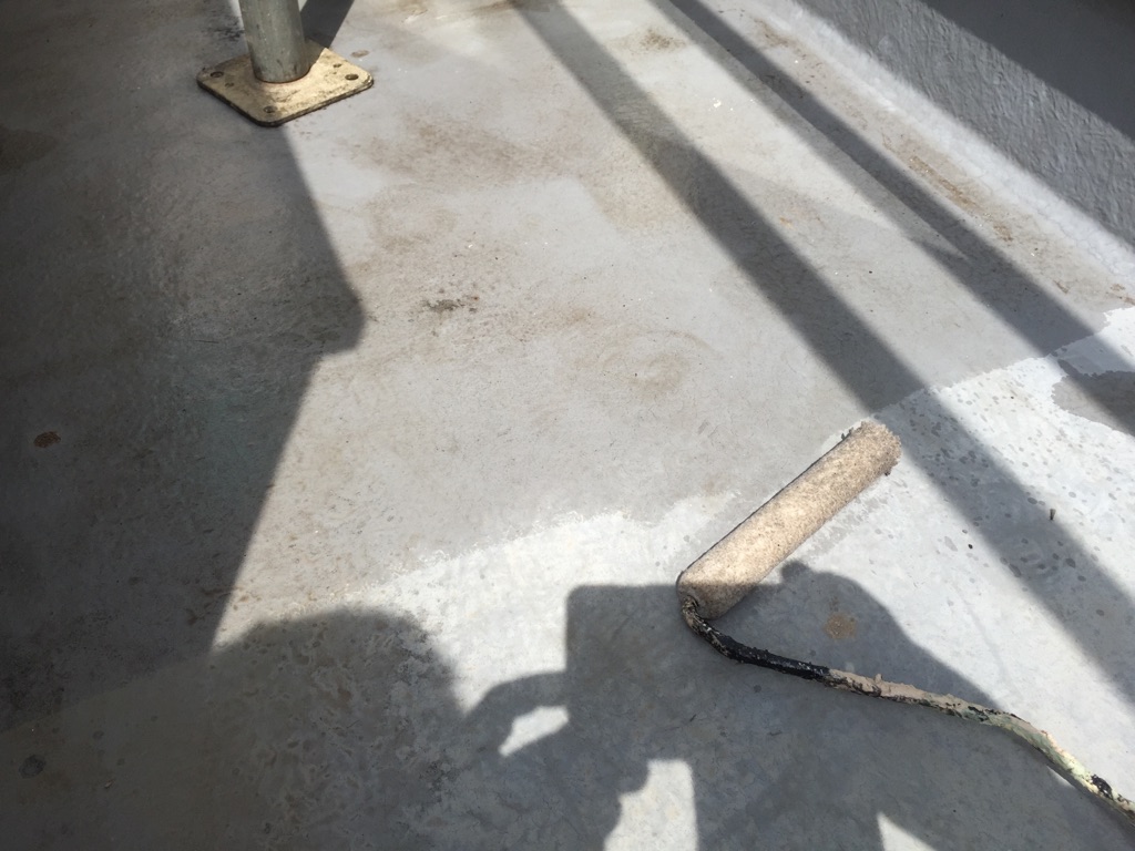ベランダ床のプライマー塗布。トップコート塗装。