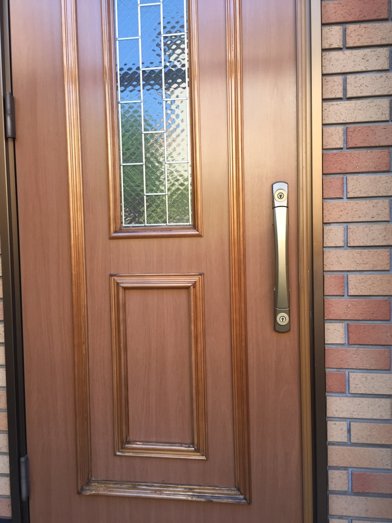 玄関ドアのモールの塗装。クリアー仕上げにて。