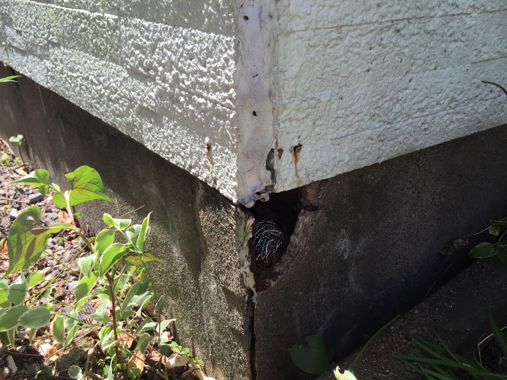 地震のせいか基礎まで割れて穴が開いている状態です。