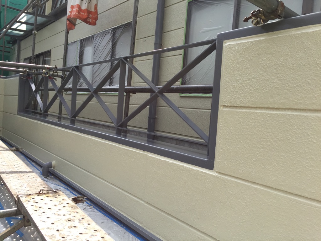 鉄部の塗装。マイルドシリコン グレー色で施工。