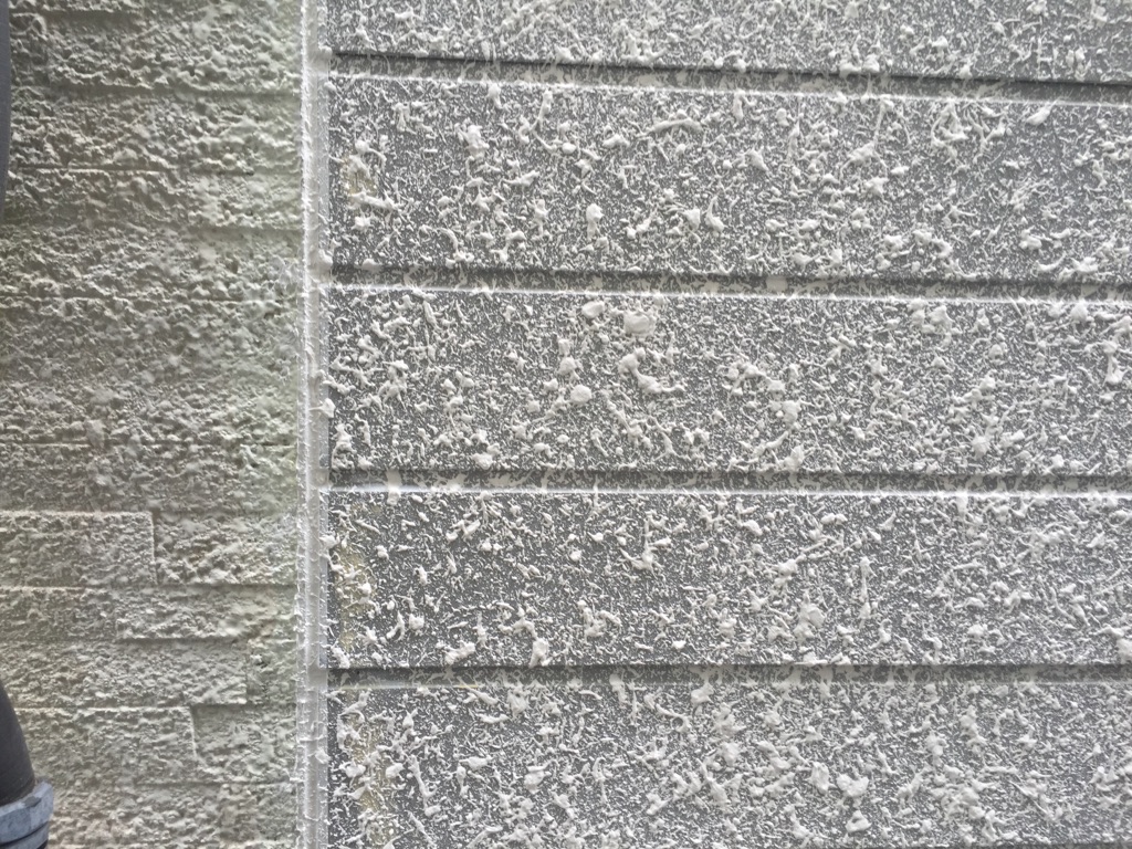 新規にサイディング施工部分のシーラー塗装、及び模様吹付塗装。