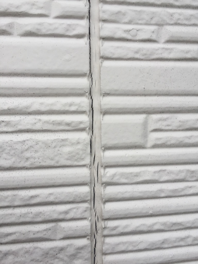外壁はサイディング。目地コーキングは西面以外は傷みが少ないので、増し打ち仕上げ。西面は撤去、打ち替え。