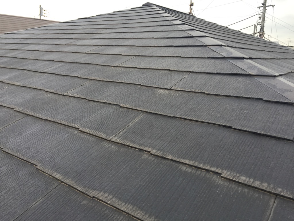 コロニアル屋根が比較的勾配が緩やかです。前回塗装の際にタスペーサーが挿入されておらず、今後の塗装時は漏水が心配です。