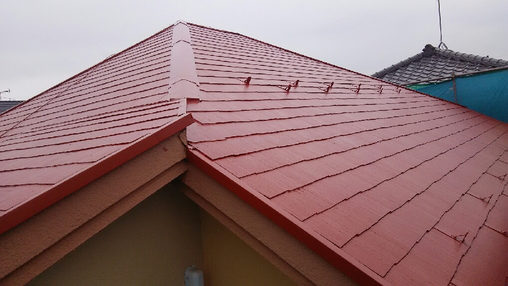 ヤネフレッシュによる中塗り及び上塗り塗装。