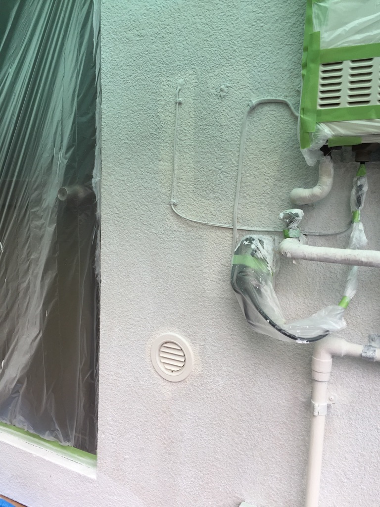 外壁養生作業。