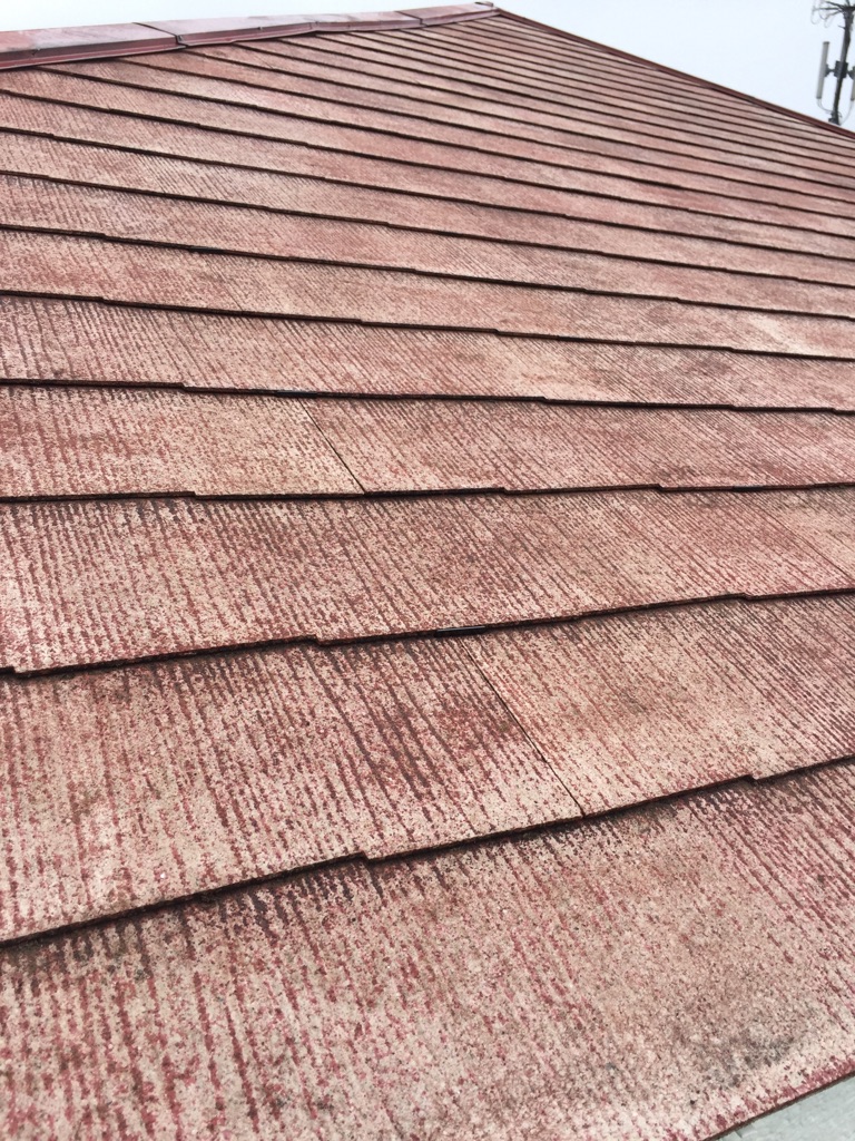 コロニアル屋根のプライマー塗装。