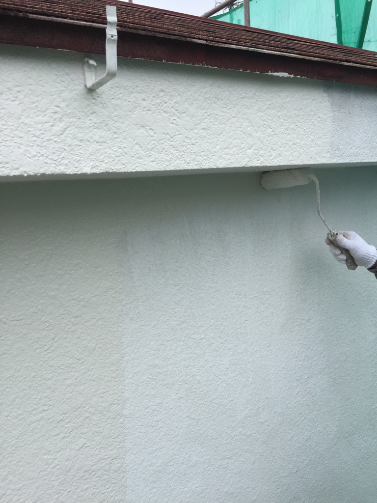 外壁 セラミクリーンSR175 中塗り及び上塗り塗装。