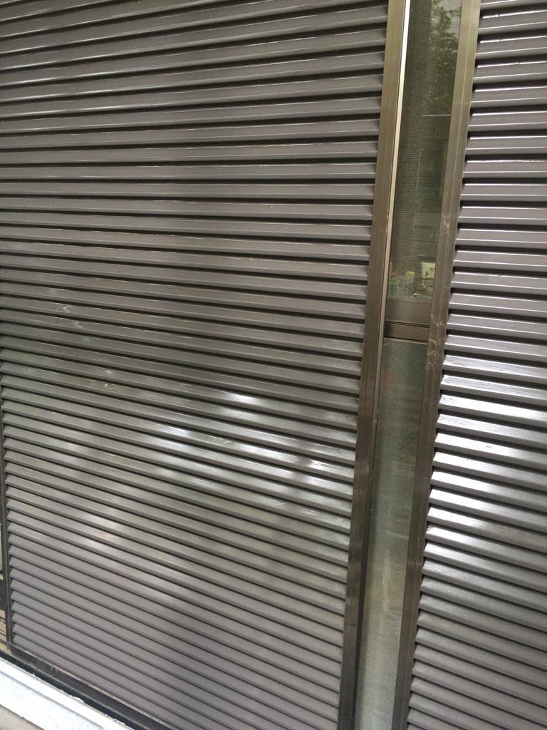 鋼製の雨戸、戸袋の塗装。マイルドシリコン 茶系色にて。