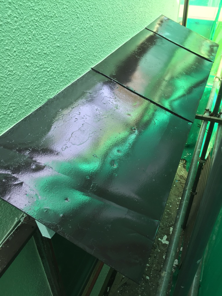 トタン部、雨戸、鉄部の塗装。マイルドシリコン ココナツブラウン色にて施工。