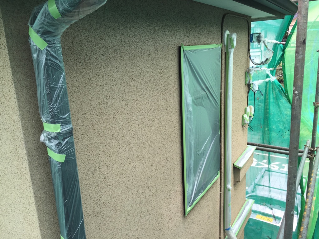外壁養生作業。