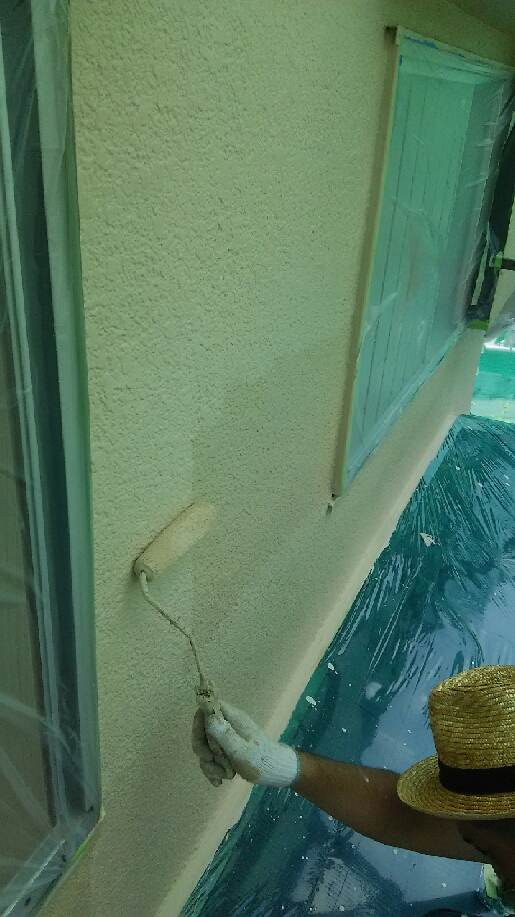 外壁中塗り及び上塗り塗装 セラミクリーンSR406。