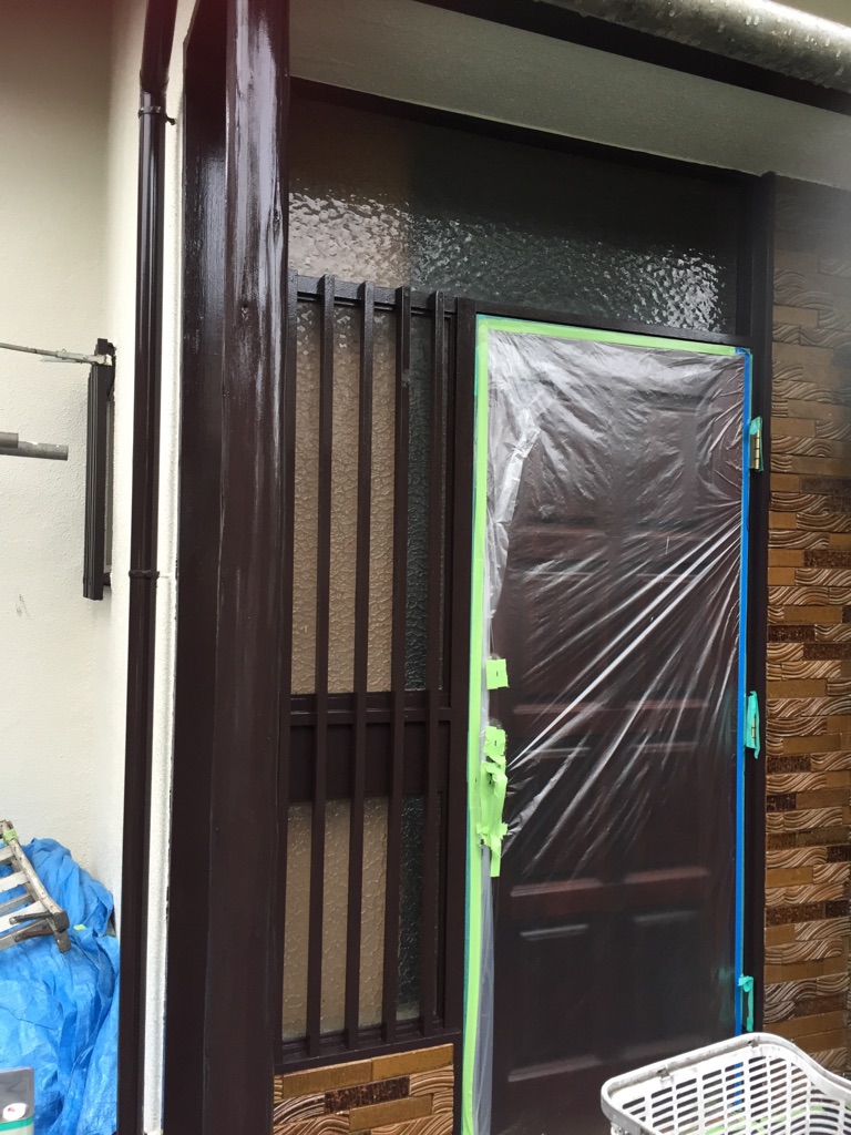 木枠と前回の残り木部塗装 マイルドシリコンココナツブラウン色。