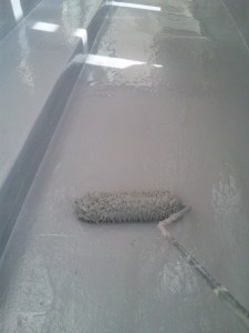 昨日の続きで、ベランダの主剤塗りの2回目です。(計4回目)これでかなり厚みが出ましたので、防水効果OK!です。