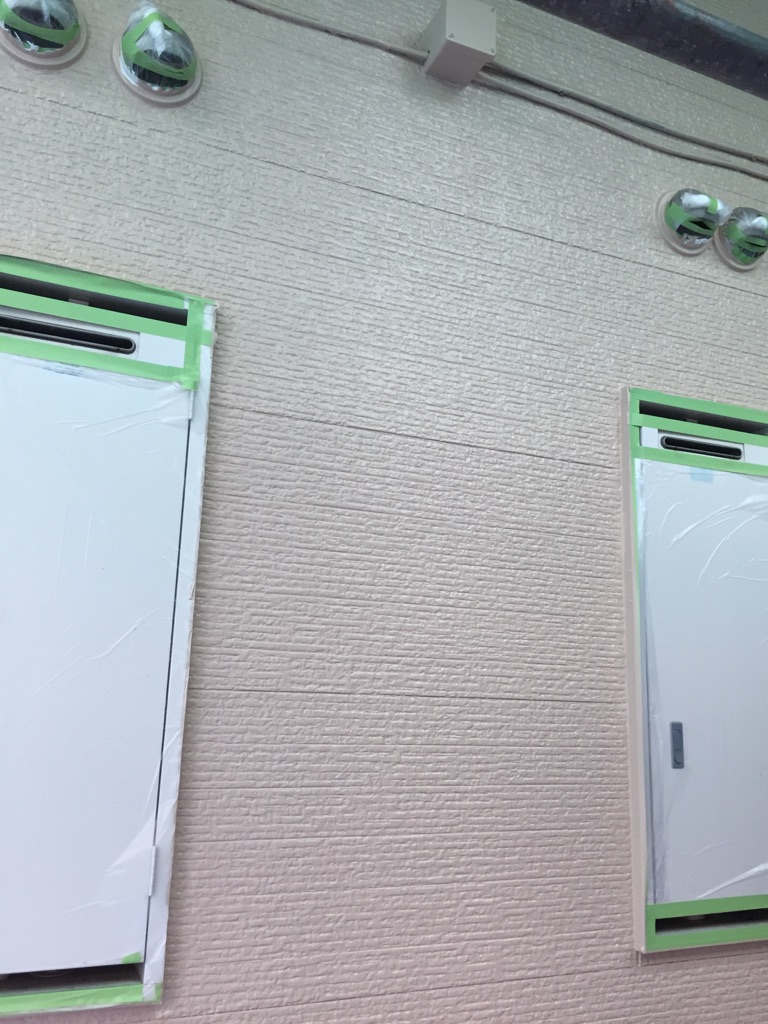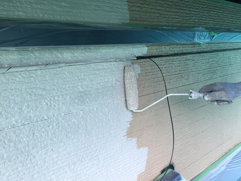 外壁 セラミシリコンによる中塗り及び上塗り塗装。