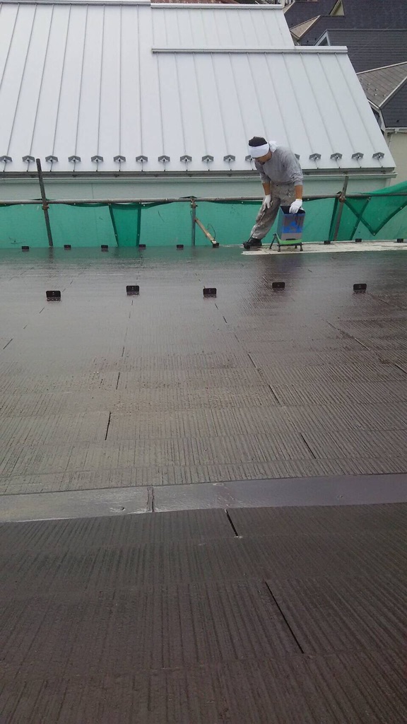コロニアル屋根プライマー塗装。