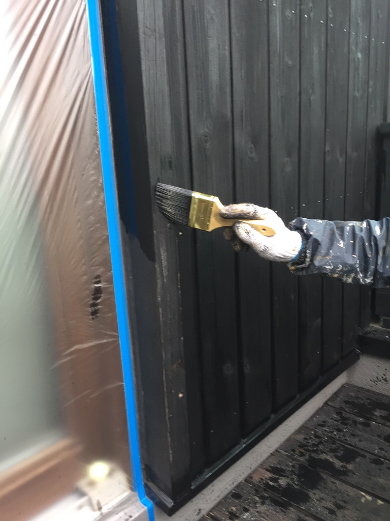 前日の続き 上部木製壁のキシラデコールによる塗装。